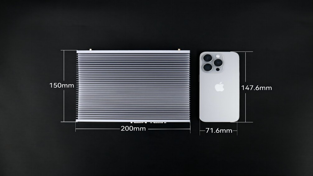 没有了风扇这一部件,体积也更为小巧,能轻松嵌入各类设备或狭小空间,完美贴合特定场景需求,例如:k8·凯发AE613,其三围尺寸是200mm x 150mm x 50mm,与iphone15的尺寸对比,宽度仅比其高度多2.4毫米,体积仅有1.5L。