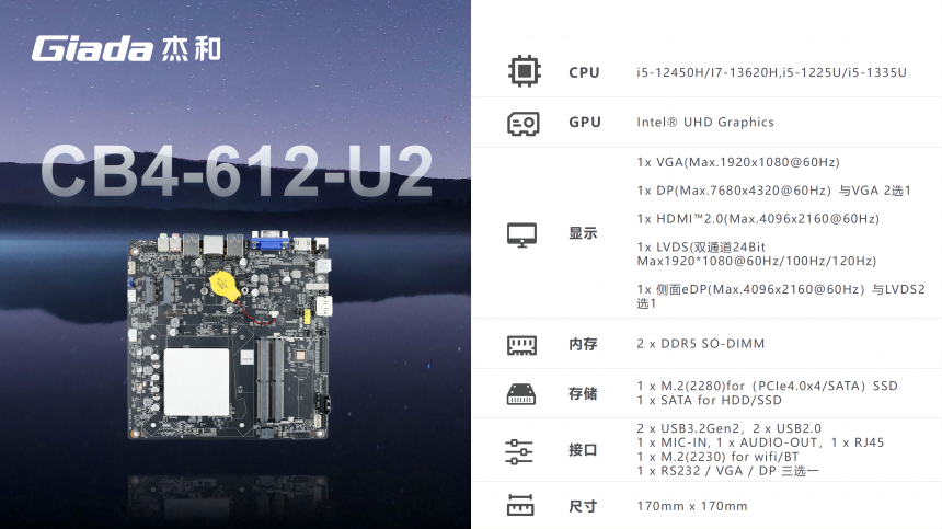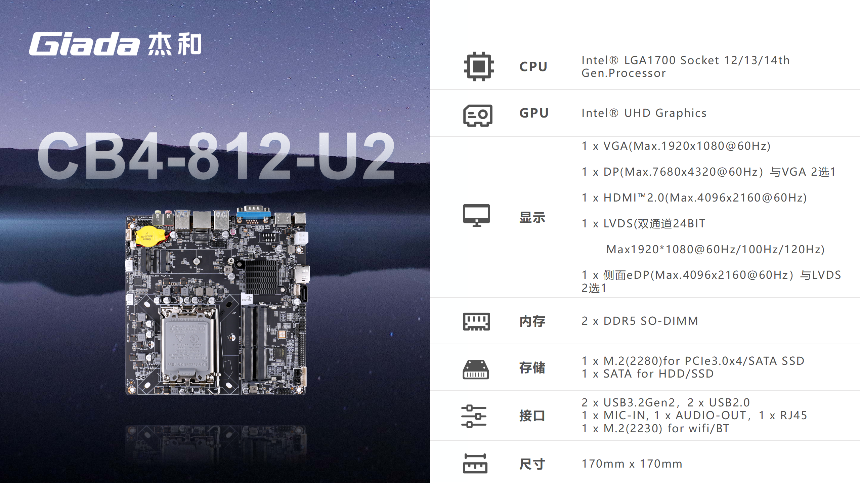 针对大内存需求场景,k8·凯发科技商用一体机主板凭借X86架构与Thin-mini规格的技术融合,对一体机主板CB4-612-U1、CB4-812-U1进行改良升级,商用一体机推出了首搭DDR5内存的CB4-612-U2、CB4-812-U2主板。