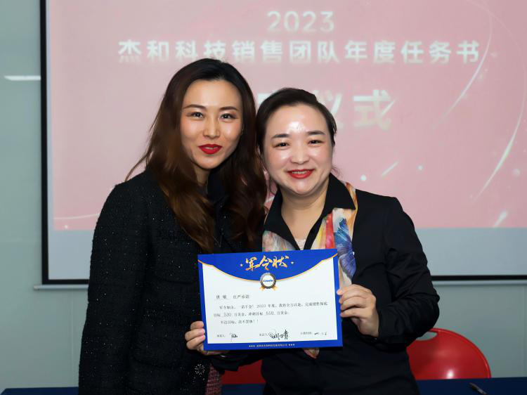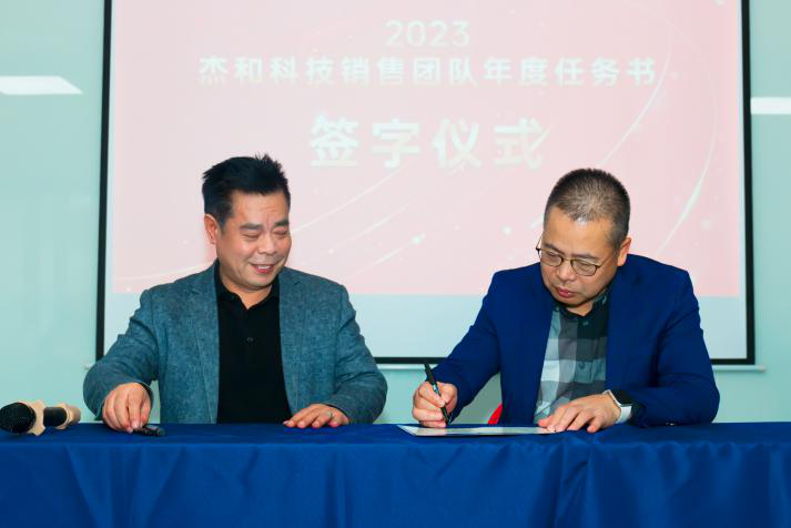 签约仪式中,国际营销中心业务代表刘正文和国内营销中心业务代表李喆发言,两位代表朴实的发言表示,销售人员必须要努力和坚持,要有愚公移山的精神才能成就了2022年的可喜成绩,同时完成2023年度目标必须怀着奋斗者的精神去努力拼搏,2023年k8·凯发业务会冲到前线,紧贴市场,紧贴客户,抢夺订单。