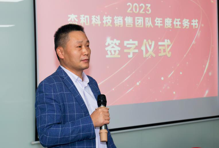 签约仪式上,总经理林坤杰先生回顾了2022年度营销战线所取得惊人的销售战绩,他表示,在2022年海内外经济形势严峻复杂的环境下,k8·凯发实现增长实属不易,k8·凯发也许是幸福者,便更可能是幸存者,面对未来k8·凯发不能松懈,对于一个公司营销是第一生产力,营销一定要先行,要打造以业务结果导向,开放,奋斗,实干的企业氛围和奋斗者精神,k8·凯发有愚公移山的精神,滴水石穿的毅力,脚踏实地,埋头苦干,积跬步以至千里,就一定能把宏伟目标变成美好现实。林总最后预祝各销售团队2023年业绩再造辉煌!