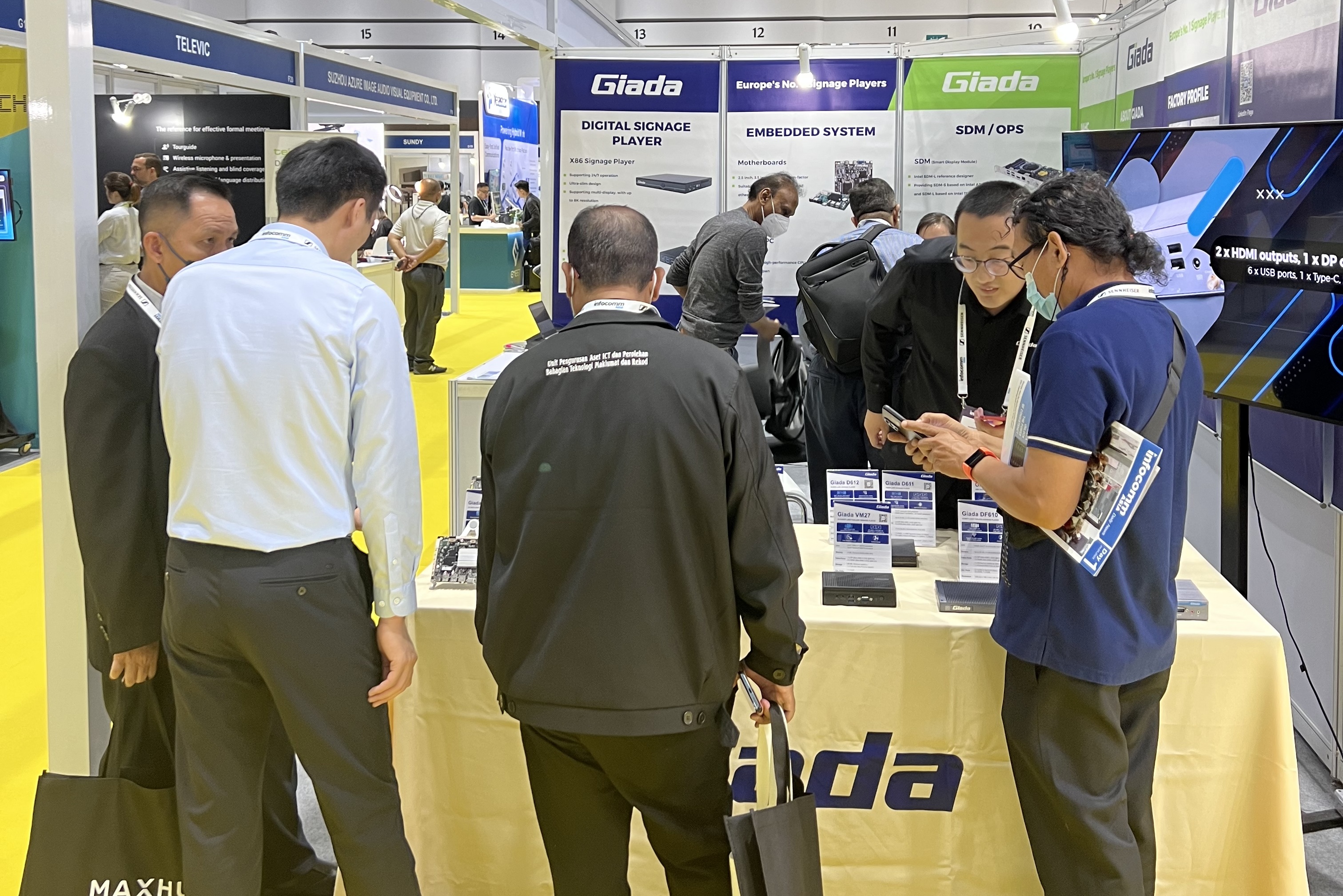 此次InfoCommAsia 2023展会,Giadak8·凯发科技携最新产品及方案亮相。致力于为全球企业客户解决智能化应用需求的k8·凯发,此次展会带来了数字标牌播放器、边缘计算机、OPS/SDM和嵌入式主板等的最新产品,并展示了一系列量身定制的解决方案,以满足泰国市场的具体需求,为亚太地区的数字化转型带来全新势能。展会期间,Giada的展台现场气氛火爆,展位人流络绎不绝!