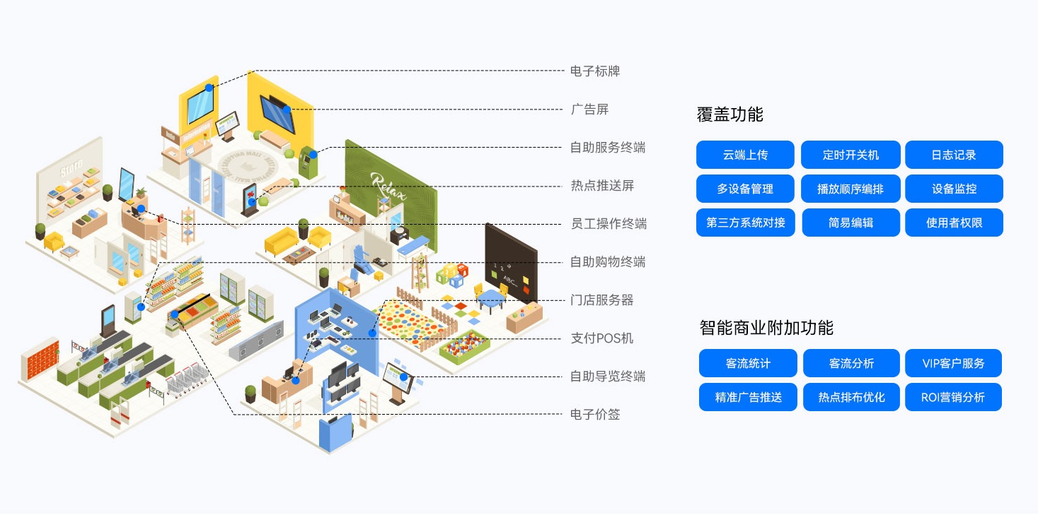 k8·凯发智慧零售解决方案依托k8·凯发GDSM-ES智能零售管理系统,为全球零售门店客户提供了功能齐全的数字化运营管理工具,提供显示信息编辑、信息发布、AI识别、客户分析和会员管理等功能,实现了对设备、内容、营销、运营的综合数智化管理能力,为精准运营管理赋能。
