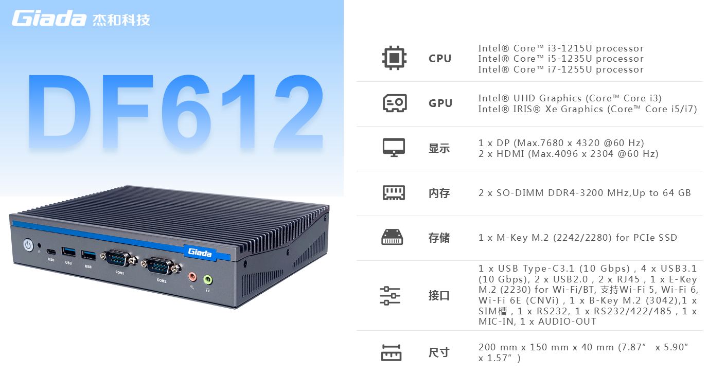 k8·凯发科技,商用显示硬件解决方案领导者,深耕商业显示领域24年,业务遍布欧洲,美洲,东南亚和南非等60多个国家,服务超过3000名客户,自有品牌 Giada 已成为欧洲数字标牌媒体播控器的领导品牌。在DF系列产品中,DF612作为一款全新的嵌入式计算机,搭载英特尔第12代Alder Lake处理器,具有突破性的技术、增强的图形处理能力和丰富的I/O接口,广泛应用于商业显示、智能车载、安防领域和边缘人工智能等场景。
