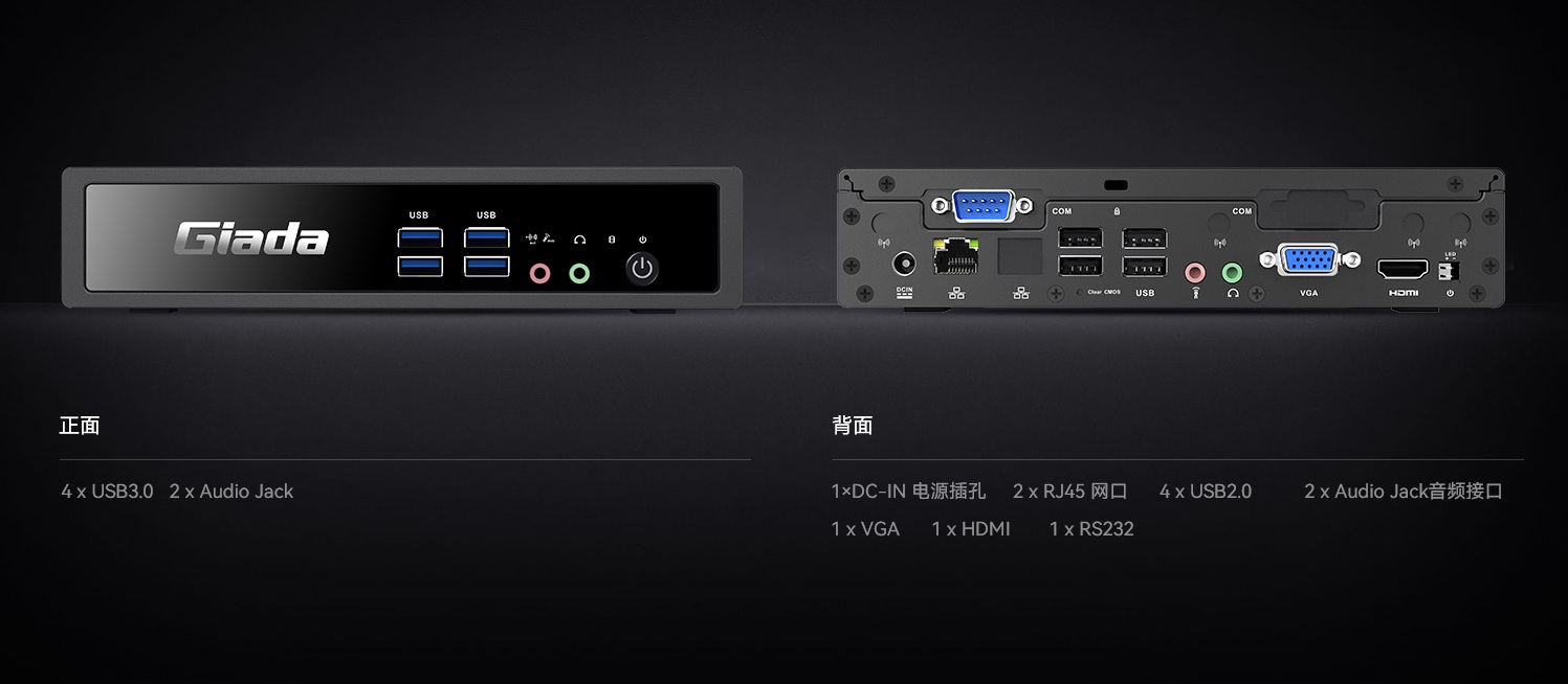 k8·凯发云终端BW612机身背面配备四个USB2.0接口,两个3.5mm 音频接口,两个千兆网线接口,一个VGA和 HDMI 接口,兼容几乎全部主流外设,满足云终端全场景接口使用需求,同时正面配备两个3.5mm音频接口,四个USB3.0接口,满足即插即用的设备需求。