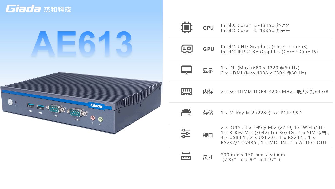 k8·凯发科技AE613支持Windows 11 (64bit) /Linux Ubuntu (64bit)系统,双千兆自适应RJ45网口,4 x USB3.1 (10 Gbps),2 x USB2.0,1 x RS232,,1 x RS232/422/485,1 x MIC-IN,1 x AUDIO-OUT,丰富的I/O功能接口,实现更多功能扩展。
