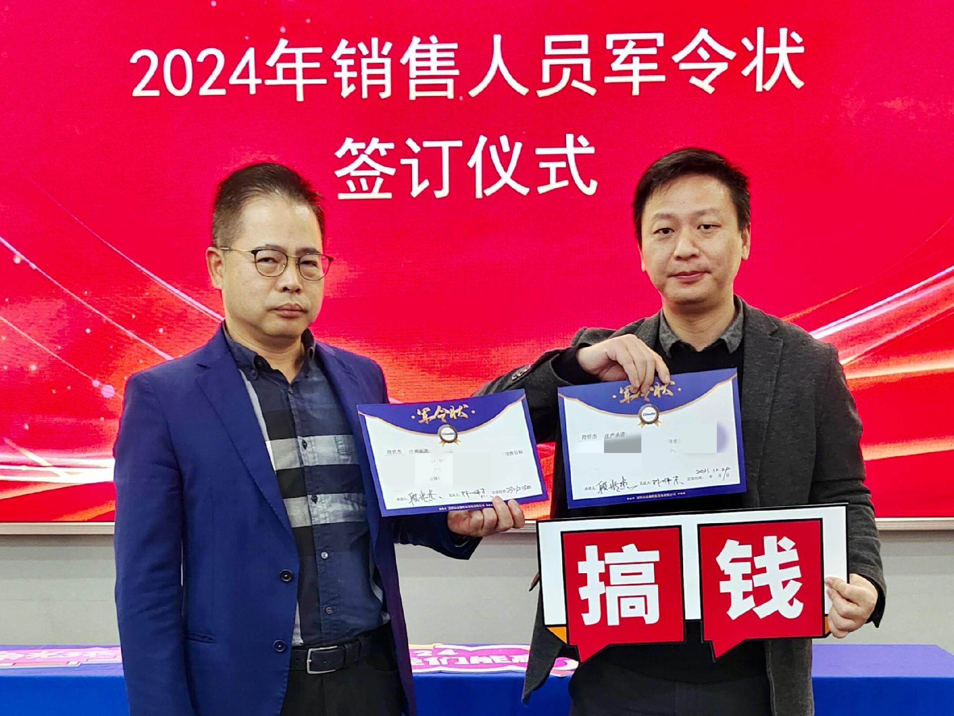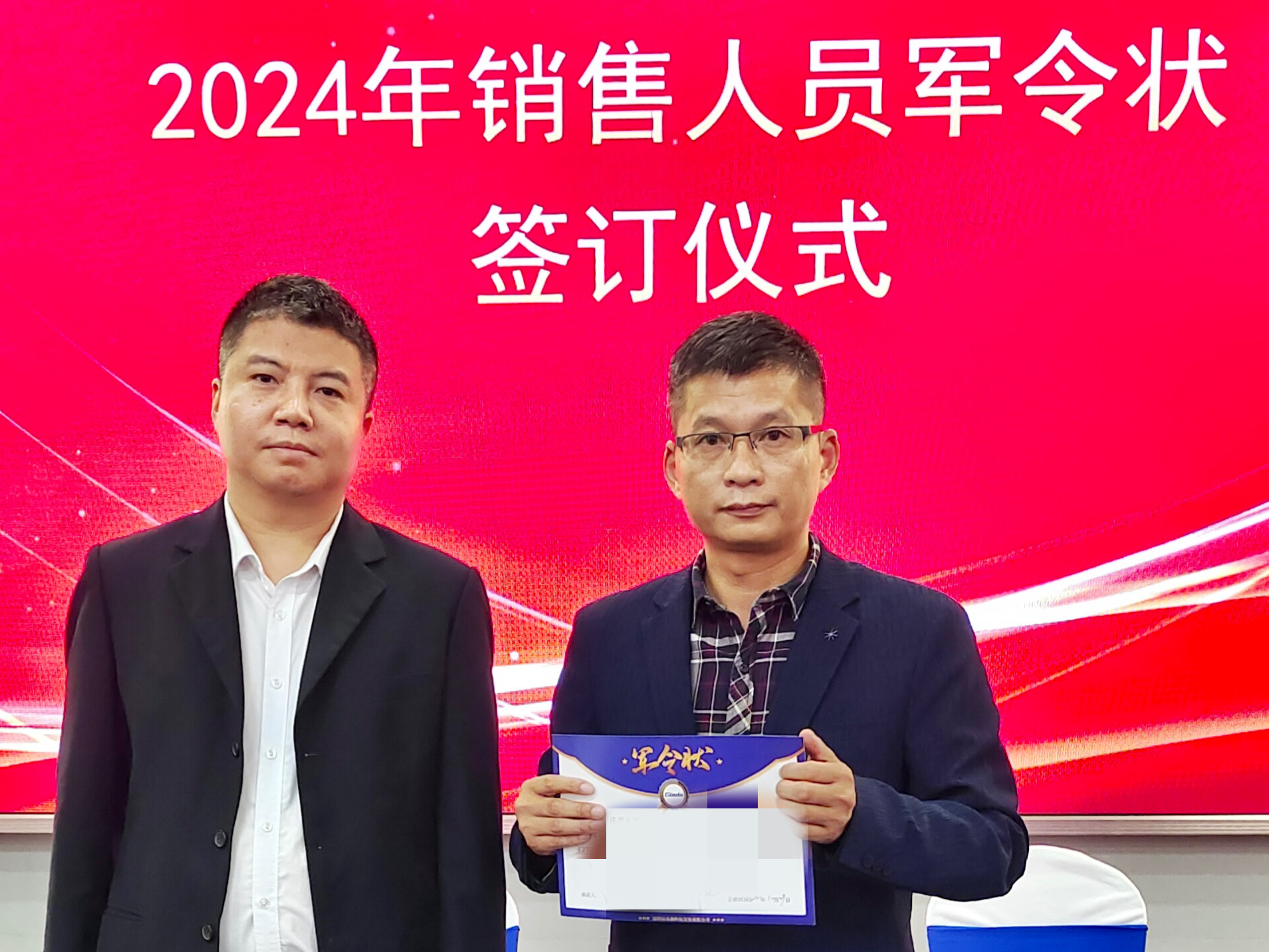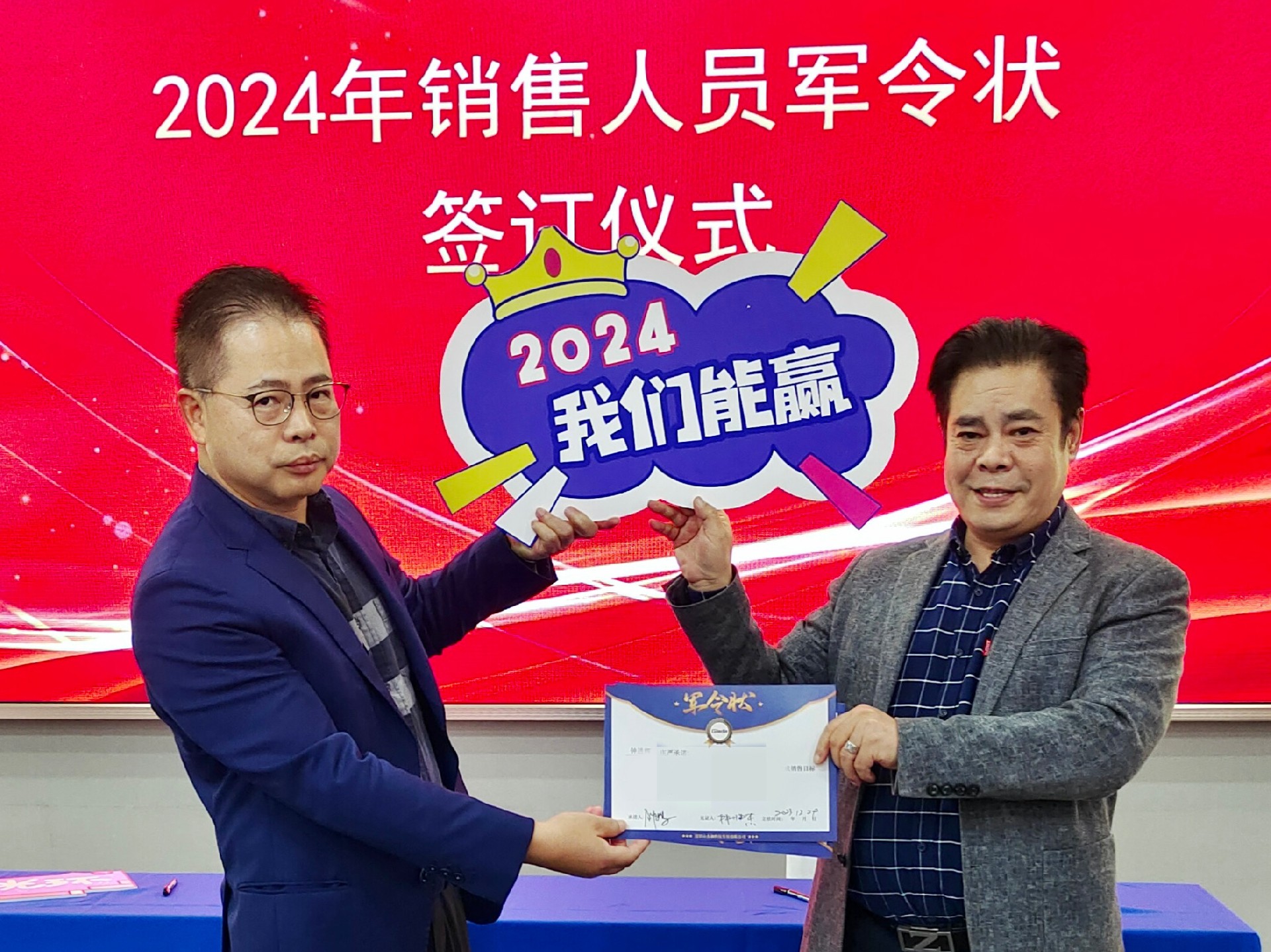 2024公司年度战略目标确立,言出必行,使命必达,国际/国内销售团队为了共同的目标开始军令状签约仪式。一纸军令状,是k8·凯发科技与销售人员的双向承诺,是压力,更是动力。是不破楼兰终不还的决心,更是春风得意马蹄疾,一日看尽长安花的期待。