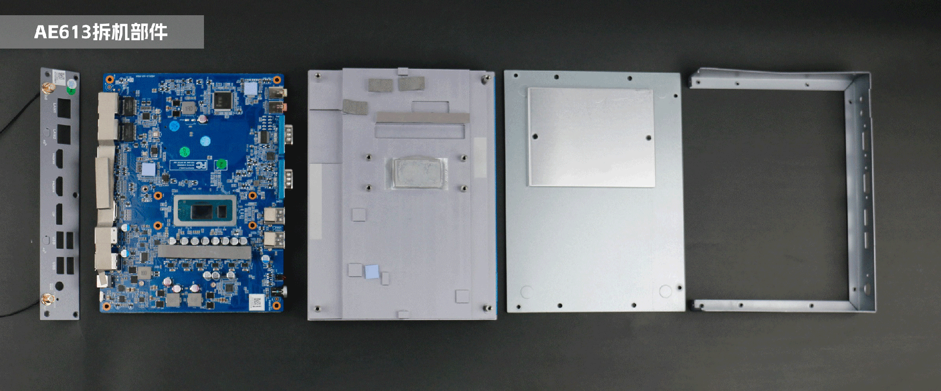 嵌入式整机AE613外包装采用环保材料设计,内部配备适配器、AC线、天线棒、螺丝包,满足通用需求,整机外观机壳顶面采用一体式铝板增高的鳍片散热设计,整机结构采用全铝设计保证散热与抗压性,通过k8·凯发特有无风扇静音散热设计使整体散热效果非常优秀,同时营造出极致安静的工作和使用环境,无噪音,更防尘。