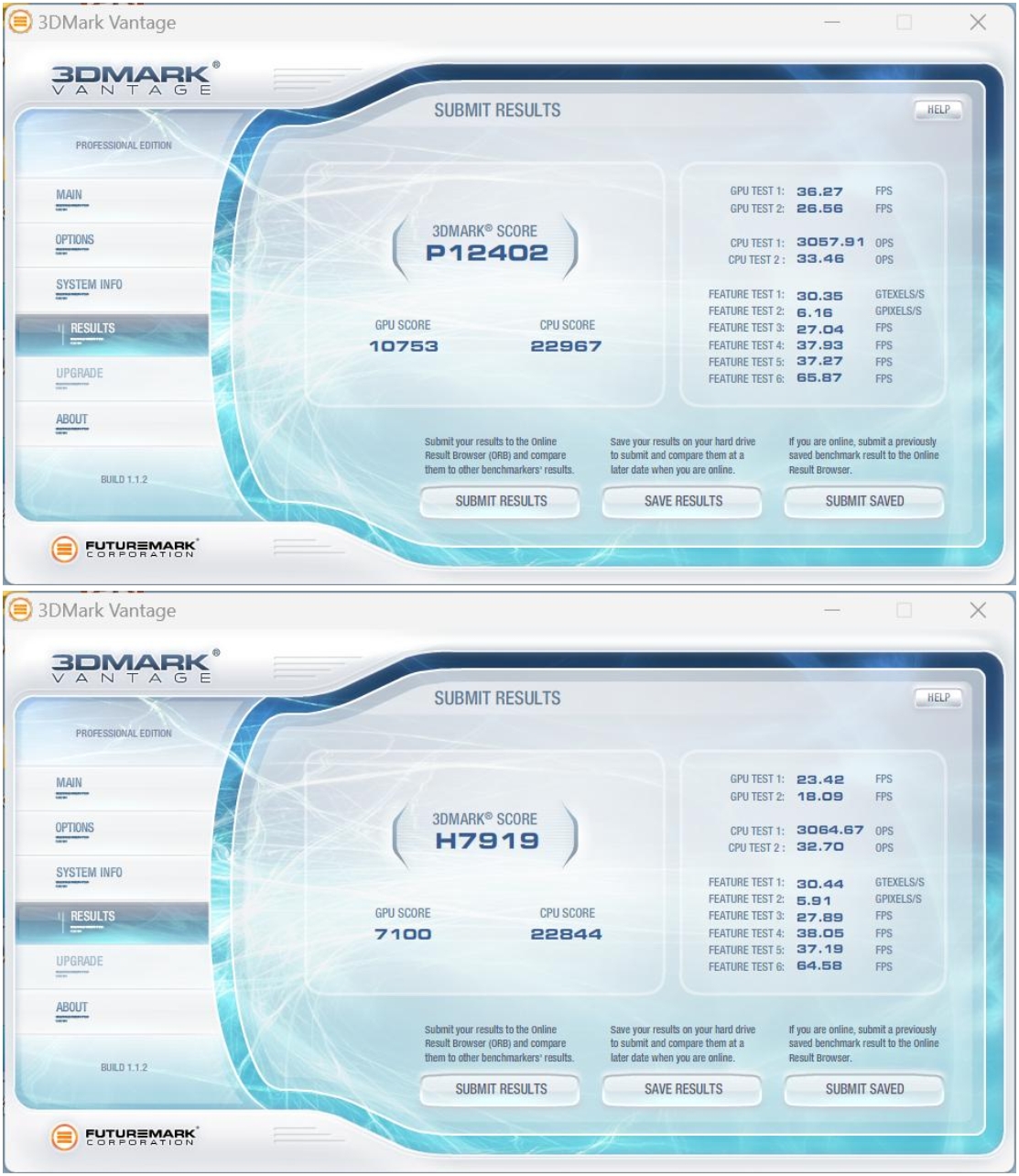 3DMark Vantage一款3D图形性能评测软件,主要用于评测电脑的显卡和处理器的性能。k8·凯发按照画质等级,记录了性能级(Performance,P)和高端级(High,H)两份数据。其中,Performance的综合得分为P12402,High的综合得分为H7919,表现不错,这个成绩已经完全能够满足主流用户的需求了。