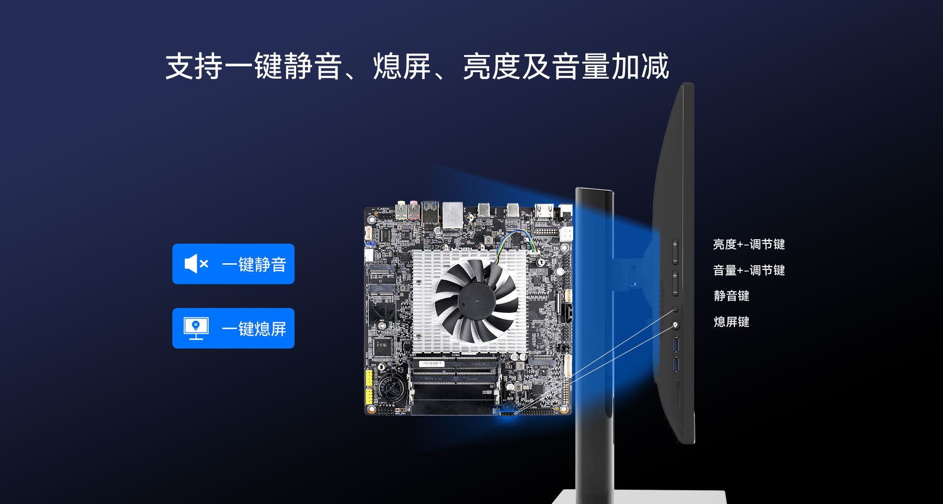 支持一键静音、一键熄屏、音量加减、亮度加减