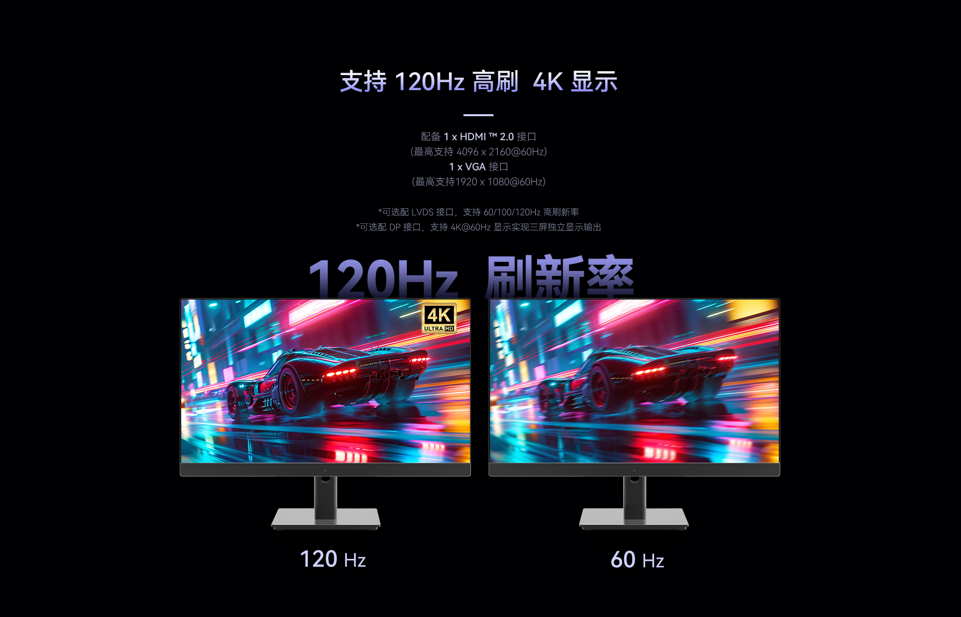 支持重力感应(可选),LVDS支持120Hz高刷(可选)