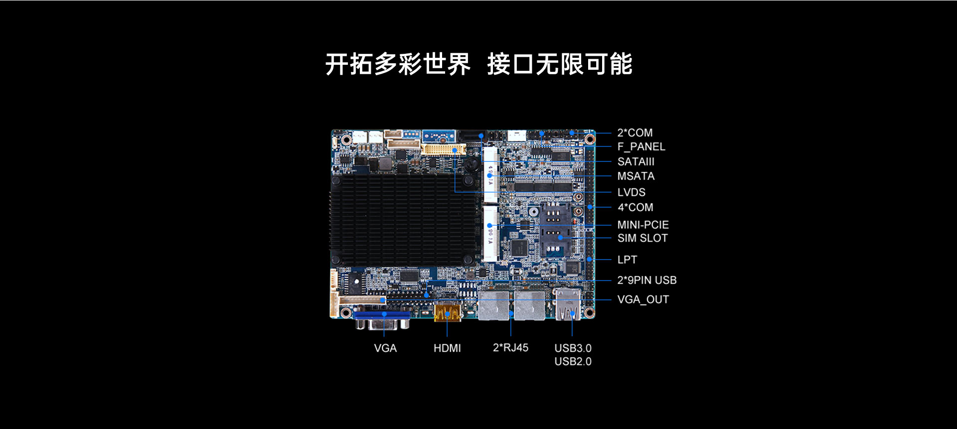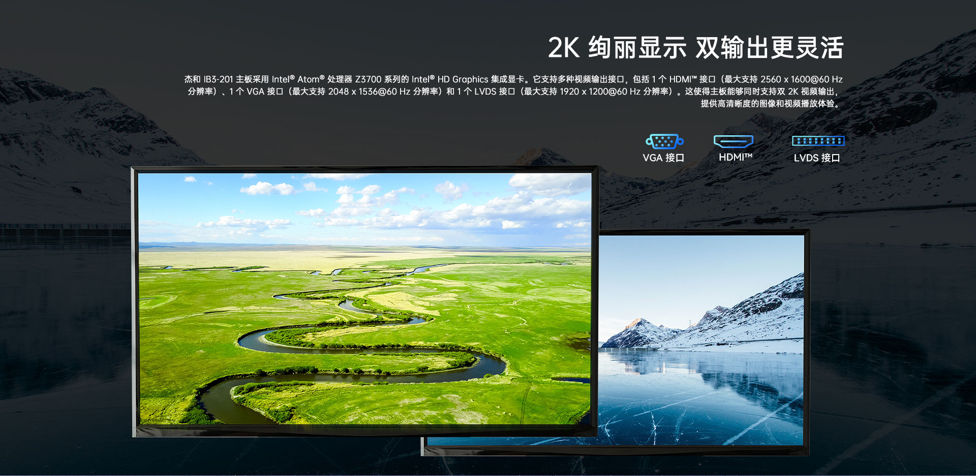 提供1x HDMI+1x VGA 1 x LVDS 2K显示输出
